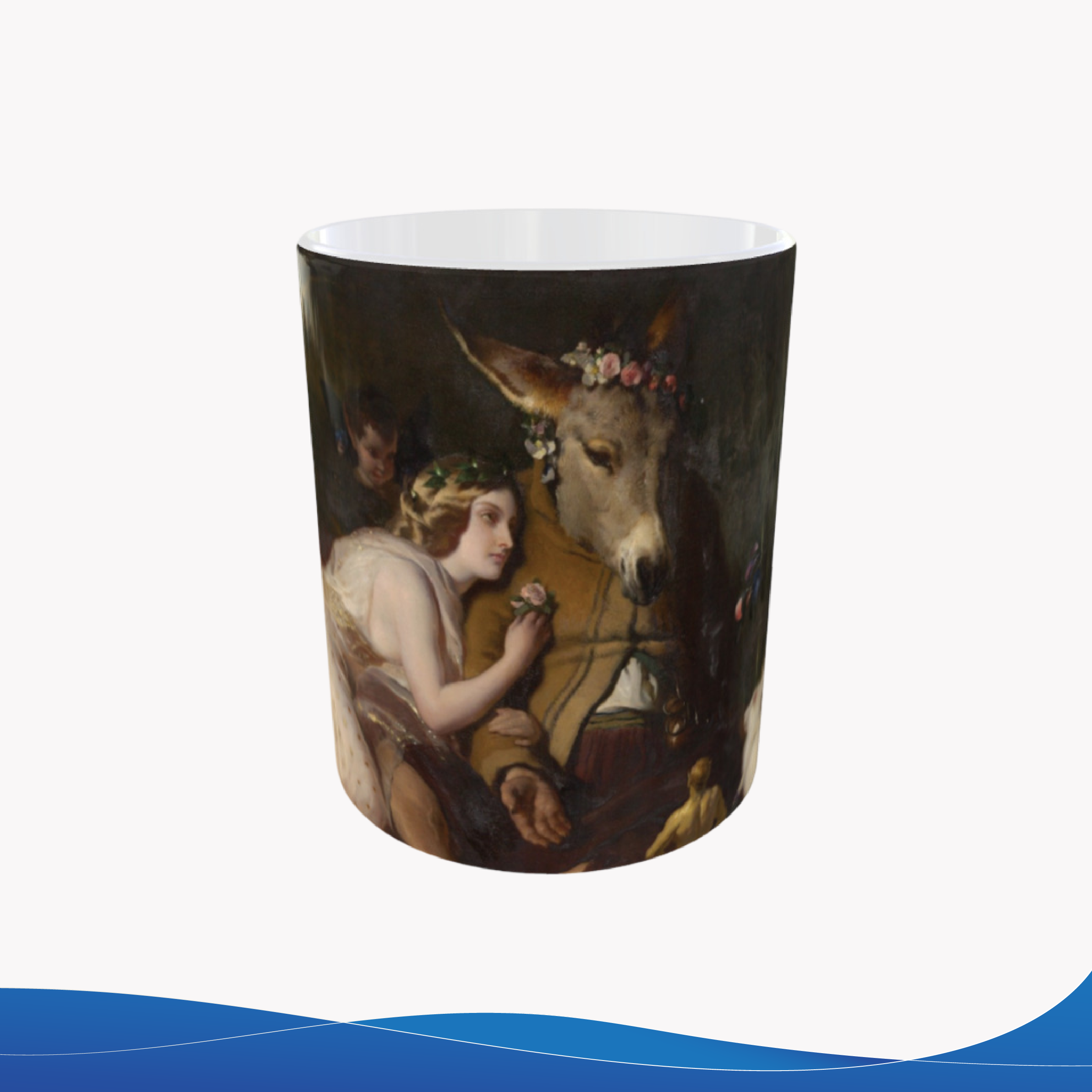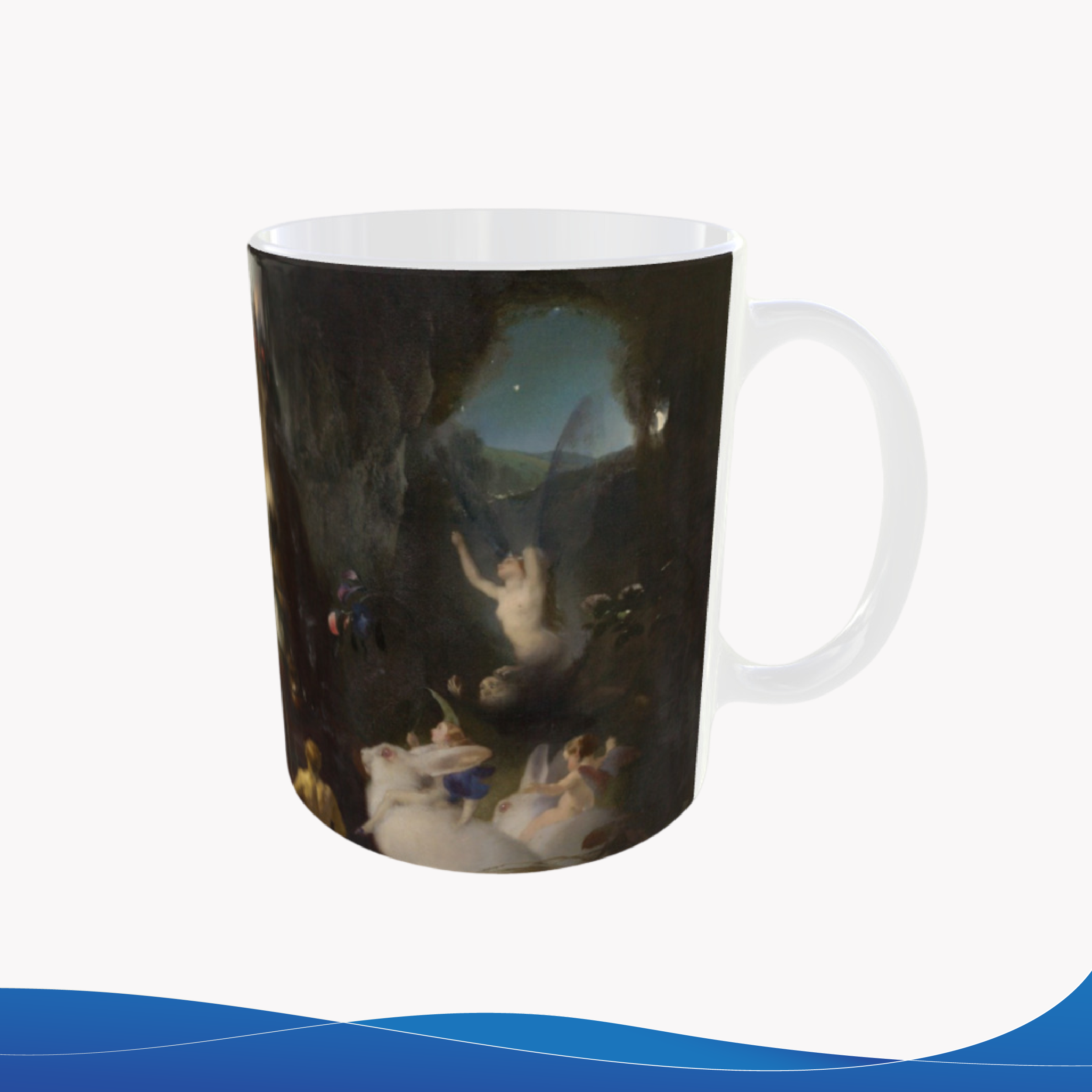 Taza de cerámica 11oz, con una hermosa pieza de arte, escena de Sueño de una noche de verano. Resistente para el día a día, perfecta para café, té o chocolate.