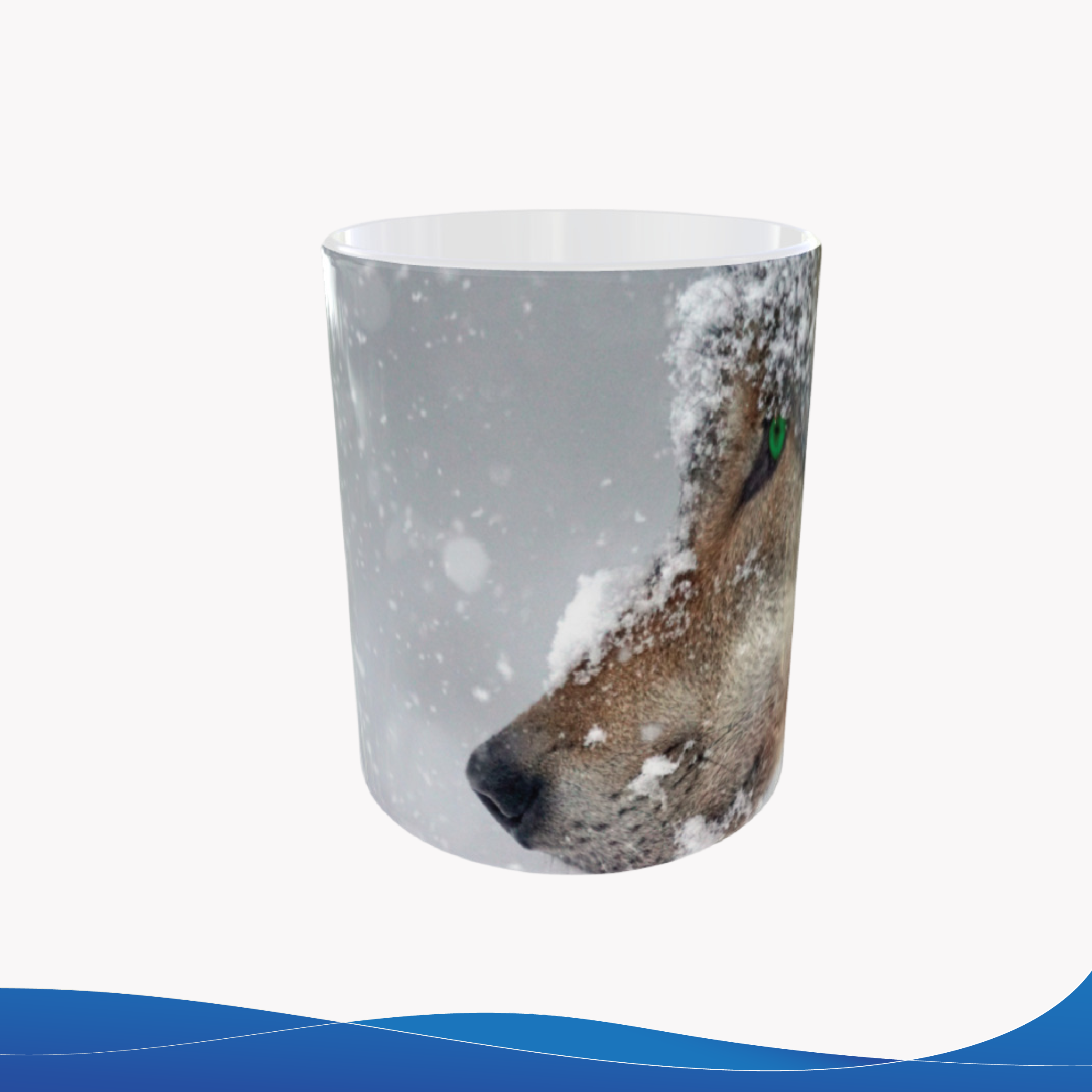 Taza de cerámica 11oz, con lobo en entorno nevado, una imagen natural inspirada en los caninos y los animales.