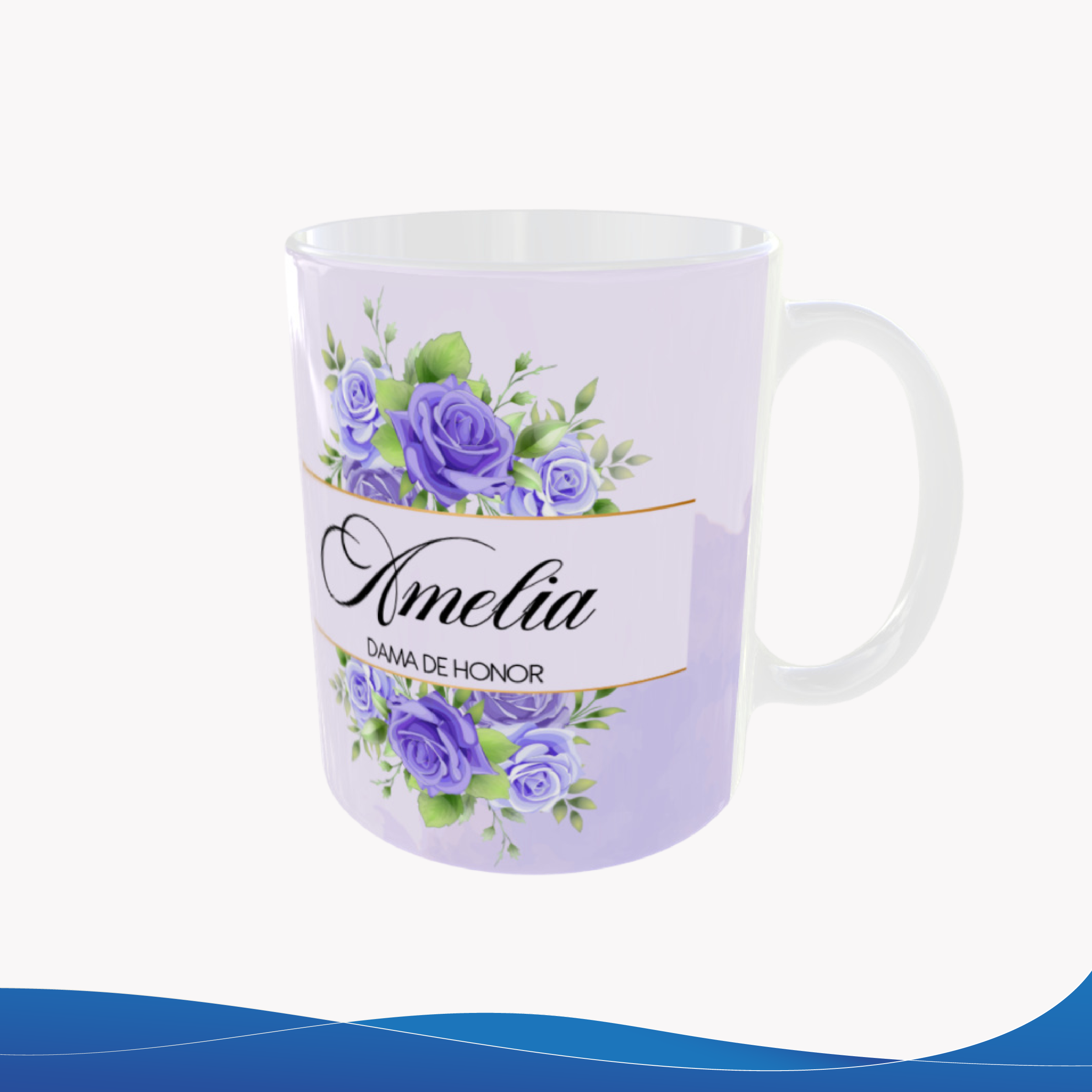 Taza de cerámica 11oz, con diseño especial para recuerdo de boda, creada para homenajear a la dama de honor con su nombre integrado de forma elegante. Un detalle pensado para agradecer, emocionar y convertir un momento especial en un recuerdo que perdura más allá del evento. ¿A quién te gustaría sorprender con un recuerdo tan significativo?